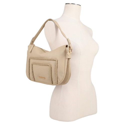 Maak je outfit compleet met de Fred De La Bretoniere Valera schoudertas in taupe, een must-have accessoire dat sprankelt van stijl en elegantie!