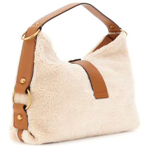 De Guess Camden schoudertas in het beige teddystof is een handige tas waar heel veel in past. Met een ritssluiting, steekvakken en een ritsvak. Perfect voor iedere gelegenheid.