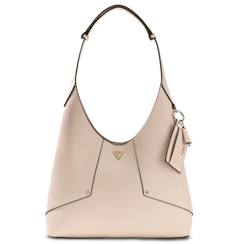 Deze prachtige beige handtas van Guess weet moeiteloos alle aandacht te trekken. Het generfde imitatieleer zorgt voor een chique maar duurzame uitstraling, terwijl de hoogglanzende goudkleurige hardware een vleugje luxe toevoegt. Een echte eyecatcher is de handige pasjeshouder die als bag charm aan de tas hangt – praktisch én stijlvol. Het iconische Guess logo is subtiel maar smaakvol aanwezig op de voorkant, wat de premium uitstraling helemaal afmaakt. Afkomstig uit het zonnige Californië staat Guess bekend om zijn combinatie van luxe, klasse en moderne ontwerpen. Extra handig: de losse pouch met ritssluiting, ideaal om jouw belangrijkste items veilig mee te nemen.