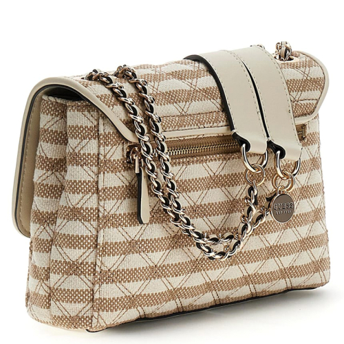 Laat je verrassen door de Guess Giully 2 schoudertas, een stijlvolle verschijning die elke outfit compleet maakt. De Giully 2 tas is met zijn gestreepte patroon onmisbaar, en zijn neutrale beige tinten maken hem perfect te combineren met al je favoriete outfits. Het chique patroon op deze tas krijgt nog meer dimensie dankzij het gewatteerde gestikte ruitpatroon. Goudkleurige hardware combineert perfect met de rest om er één warm geheel van te maken. Guess, een merk dat zijn oorsprong vindt in de glamoureuze straten van Los Angeles, staat bekend om zijn trendy en kwalitatieve ontwerpen. Giully 2 is hier geen uitzondering op, en zet de toon voor een stijlvol statement in de modewereld.