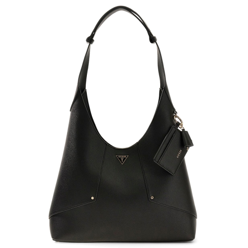 Deze prachtige zwarte handtas van Guess weet moeiteloos alle aandacht te trekken. Het generfde imitatieleer zorgt voor een chique maar duurzame uitstraling, terwijl de hoogglanzende goudkleurige hardware een vleugje luxe toevoegt. Een echte eyecatcher is de handige pasjeshouder die als bag charm aan de tas hangt – praktisch én stijlvol. Het iconische Guess logo is subtiel maar smaakvol aanwezig op de voorkant, wat de premium uitstraling helemaal afmaakt. Afkomstig uit het zonnige Californië staat Guess bekend om zijn combinatie van luxe, klasse en moderne ontwerpen. Extra handig: de losse pouch met ritssluiting, ideaal om jouw belangrijkste items veilig mee te nemen.