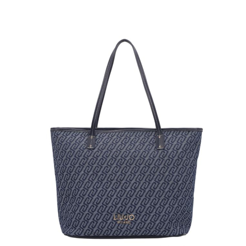 De Liu Jo Evrim is een stijlvolle schoudertas uitgevoerd in lichtblauw denim. Over de voorkant zijn de letters 'L' en 'J' verwerkt in een iets donkerder blauw denim, wat zorgt voor een subtiel en speels contrast. De tas is afgewerkt met bruine details en luxe goudkleurige hardware, waaronder het logo aan de voorkant, waardoor het geheel een elegante uitstraling krijgt.