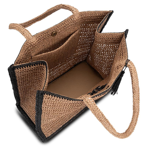 De praktische kant van deze zomerse shopper stelt zeker niet teleur. Met een royaal hoofdvak biedt deze tas genoeg ruimte voor al je benodigdheden. De tas opent gemakkelijk met een magneetsluiting, terwijl je twee vaste draaghengsels een comfortabele grip bieden. Binnenin vind je een handig steekvak, perfect voor je mobiele telefoon of andere kleine essentials.