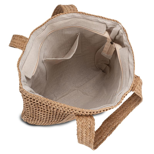 Deze ruime shopper is ontworpen om jouw dagelijkse avonturen te ondersteunen. Met twee vaste draaghengsels ligt de tas comfortabel in je hand of over je schouder. De tas opent gemakkelijk met een praktische ritssluiting, zodat je spullen veilig opgeborgen blijven. Binnenin vind je een handig steekvak, perfect om je mobiele telefoon of andere essentiële items snel bij de hand te hebben.