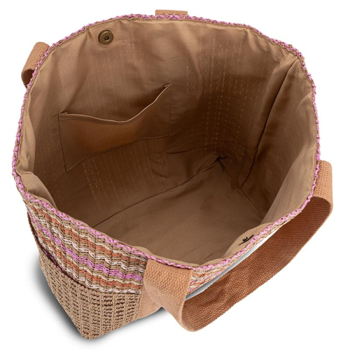 Stel je voor: een zomerse dag, een prachtige strandwandeling en jij met de Lycke Oslo schoudertas aan je zijde. Deze roze shopper uit de verfijnde Summer collectie is een ware eyecatcher met zijn elegante, in raffia gestikte strepen in lichtroze, roze en caramel. De tas straalt niet alleen stijl uit, maar ook de Scandinavische kwaliteit waar Lycke Oslo voor staat. Met de caramelgekleurde katoenen banden die naadloos overlopen in twee comfortabele draaghengsels, ben je helemaal klaar voor de zomer. En vergeet de handige steekvakken aan de zijkanten niet; perfect voor je waterfles of andere must-haves tijdens een dagje strand of stad.
