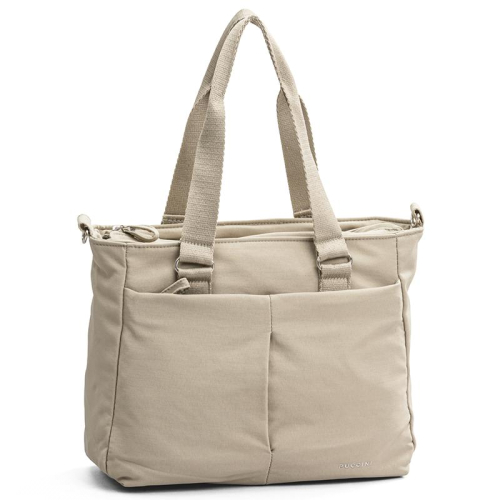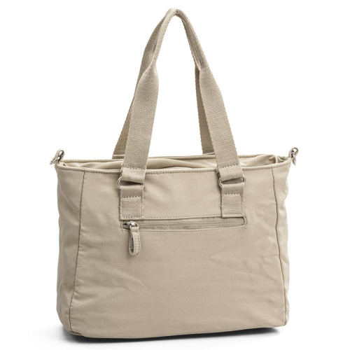 De Puccini Lotta is een schoudertas in het beige met een moderne, sportief-chique uitstraling. De tas is gemaakt van stevig nylon en afgewerkt met zilverkleurige hardware. Op de voorkant is het logo subtiel geëmbossed, wat het ontwerp een elegante, tijdloze touch geeft.