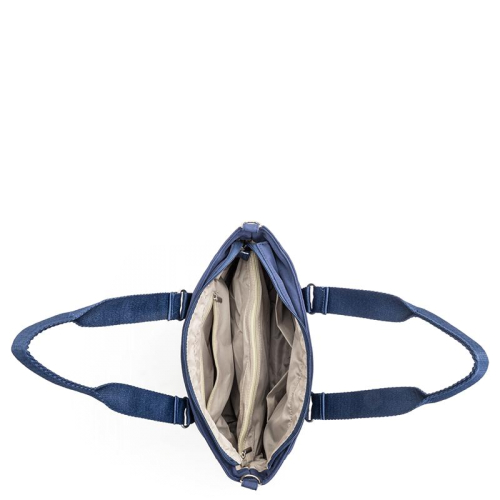 De Puccini Lotta is een schoudertas in het blauw met een moderne, sportief-chique uitstraling. De tas is gemaakt van stevig nylon en afgewerkt met zilverkleurige hardware. Op de voorkant is het logo subtiel geëmbossed, wat het ontwerp een elegante, tijdloze touch geeft.