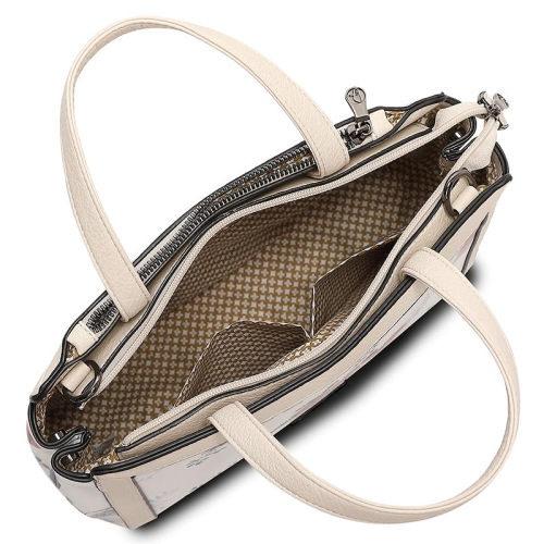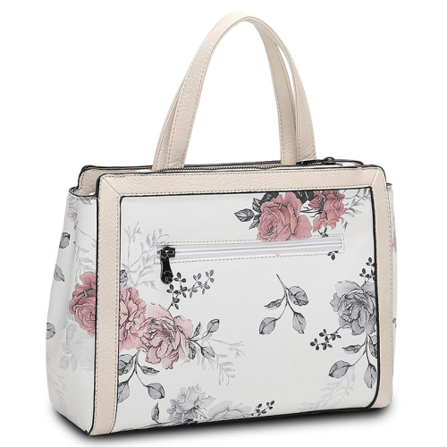 Als je op zoek bent naar een tas die direct de show steelt, dan is de Puccini Diana handtas precies wat je nodig hebt. Met zijn levendige bloemenpatroon op een frisse witte achtergrond brengt deze stijlvolle tas een vleugje vrolijkheid in je dagelijkse look. De charmante details van donkerzilverkleurige hardware en ecru kunstleren accenten geven het geheel een elegante uitstraling. Het merk Puccini, bekend om zijn kwaliteit en finesse, heeft wederom zijn positie in de markt als trendsetter bevestigd met deze prachtige tas.