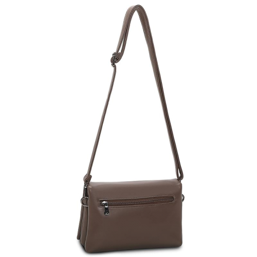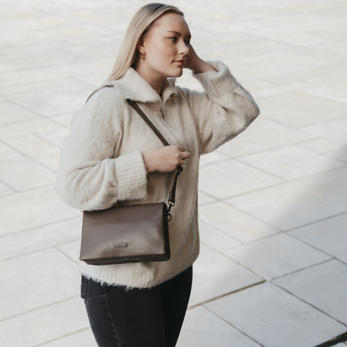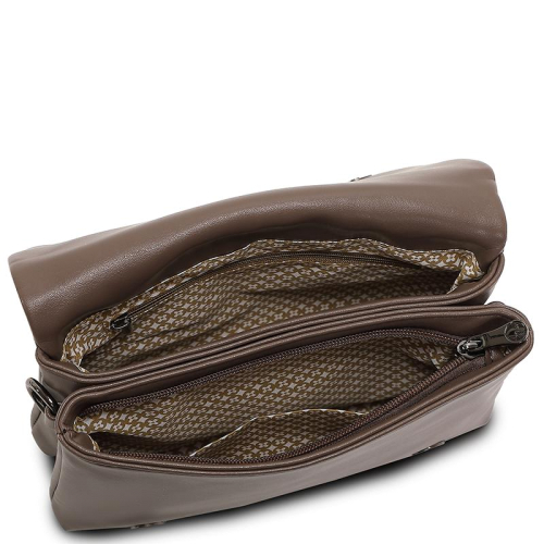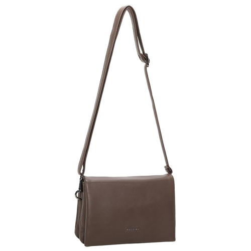 De Puccini Melissa tas in taupe is een strak vormgegeven model dat elegantie en functionaliteit moeiteloos combineert. Het minimalistische design en de glanzende afwerking maken deze tas tot een veelzijdige keuze voor dagelijks gebruik.