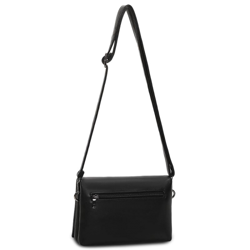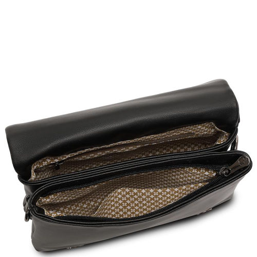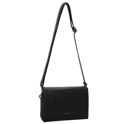 De Puccini Melissa tas in zwart is een strak vormgegeven model dat elegantie en functionaliteit moeiteloos combineert. Het minimalistische design en de glanzende afwerking maken deze tas tot een veelzijdige keuze voor dagelijks gebruik.