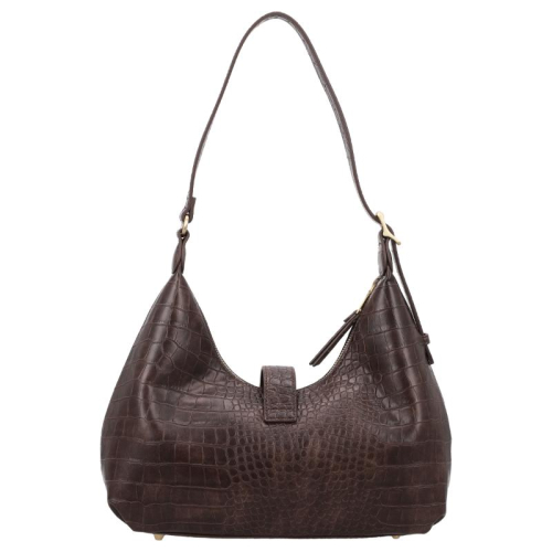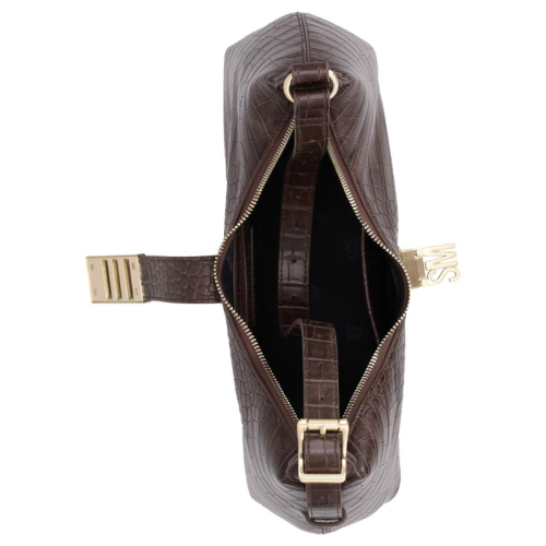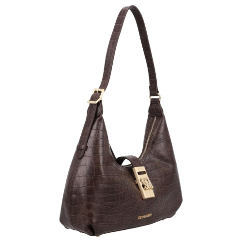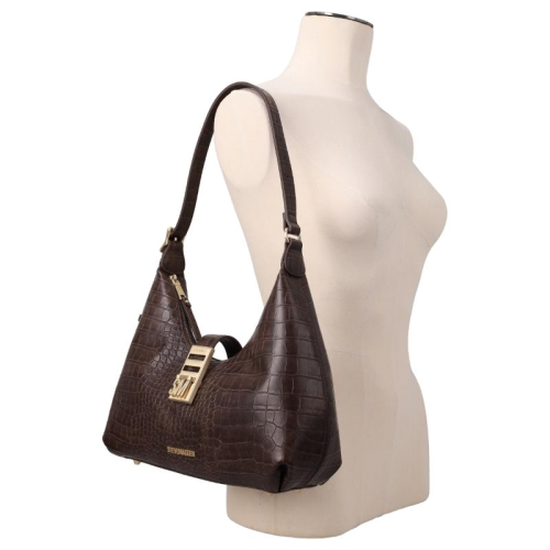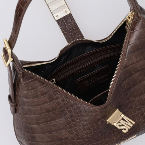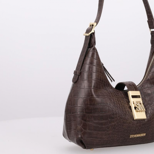 De BovieA schoudertas van Steve Madden is een echte blikvanger. Met haar bruine slangenprint, glanzende goudkleurige hardware en het iconische logo op de voorkant straalt deze tas pure glamour uit. Het generfde imitatieleer geeft de tas een luxe uitstraling, terwijl de details zorgen voor een krachtig fahion statement.