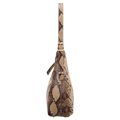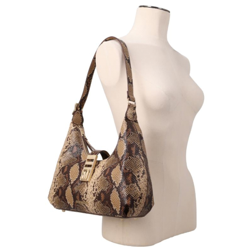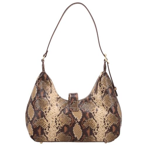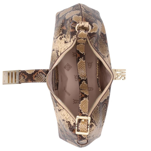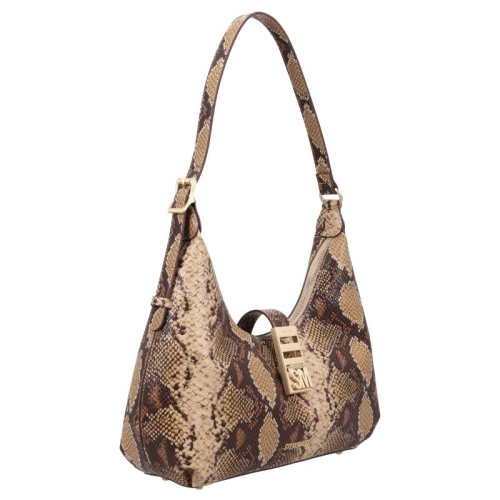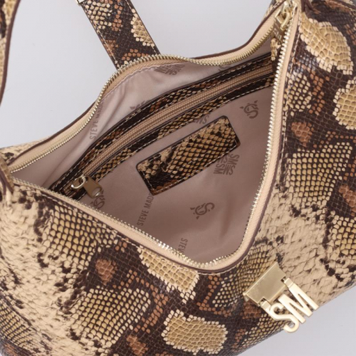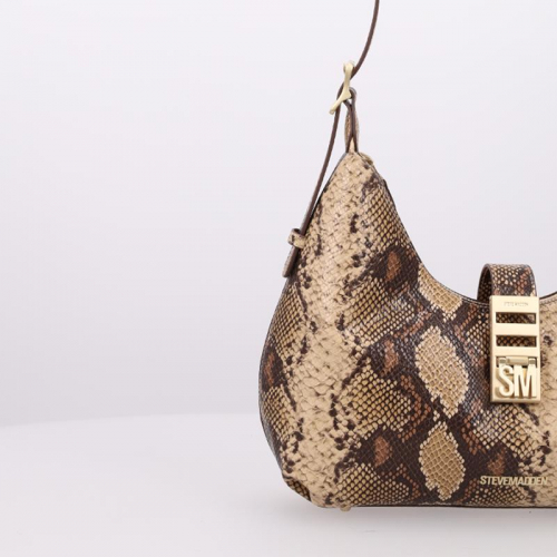 De BovieA schoudertas van Steve Madden is een echte blikvanger. Met haar opvallende slangenprint, glanzende goudkleurige hardware en het iconische logo op de voorkant straalt deze tas pure glamour uit. Het generfde imitatieleer geeft de tas een luxe uitstraling, terwijl de details zorgen voor een krachtig fahion statement.