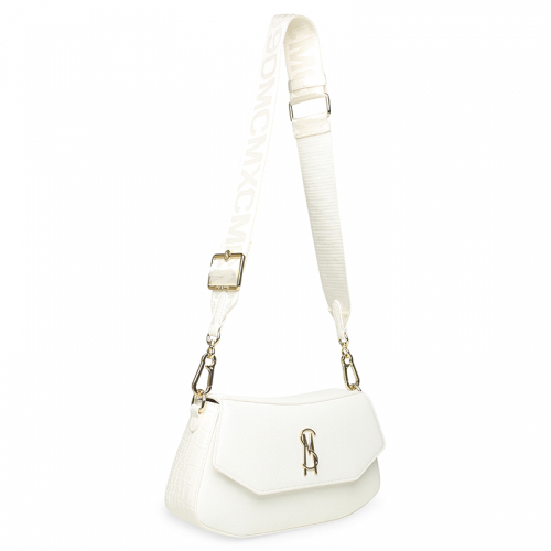 Stijlvol en strak, dat is de Steve Madden BlyonC tas. Deze witte schoudertas, met zijn gehoekte sluitklep en sprankelende goudkleurige hardware, mag gezien worden. Het metalen merklogo op de voorkant straalt klasse uit terwijl de zijkanten met een chique crocoprint design een unieke twist geven. Steve Madden, afkomstig uit de Verenigde Staten, staat bekend om zijn trendy en kwalitatieve tassen die stijlvol zijn gepositioneerd in de modewereld.