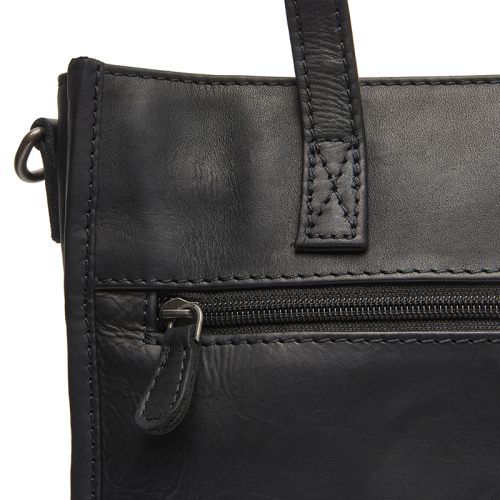De tas heeft zowel aan de voor- als achterkant een rtisvak voor items die je snel bij de hand wilt hebben. Het hoofdcompartiment sluit met een rits en is binnenin voorzien van een ritsvak, een steekvak, drie pennenlussen en vijf steekvakken voor pasjes, ideaal om alles georganiseerd op te bergen.