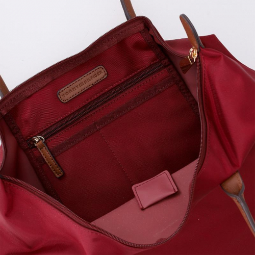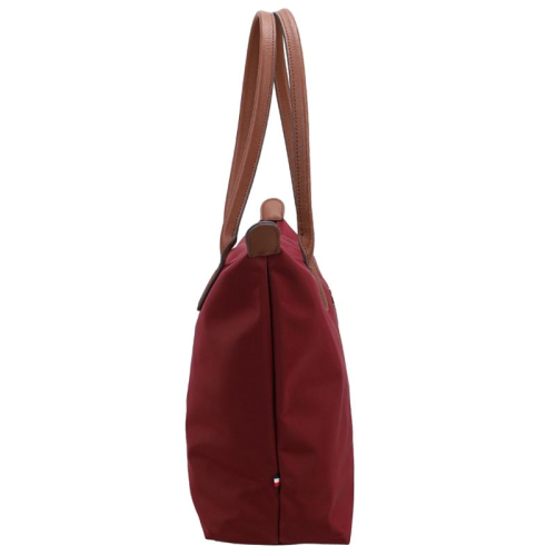 De tas is uitgevoerd in de kleur rood en voorzien van bruine hengsels die zorgen voor een warm kleurcontrast. De goudkleurige hardware voegt een vleugje luxe toe, met als blikvanger het iconische verweven ‘T’ en ‘H’-logo op de voorkant.