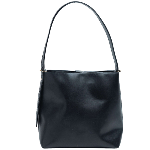De Trashious Nila bucketbag is een moderne tas van bamboeleer in zwart, afgewerkt met goudkleurige hardware. Het minimalistische design krijgt een verfijnde uitstraling door de combinatie van duurzame materialen en subtiele details.