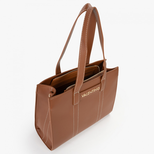 Deze handtas straalt een ingetogen elegantie uit. Met zijn beigekleurige kunststof en verfijnde gestikte details is het een lust voor het oog voor iedere modebewuste vrouw. De goudkleurige hardware voegt een vleugje luxe toe en accentueert het metalen Valentino Bags logo prachtig. Valentino Bags is een merk dat zijn roots heeft in Italië en staat bekend om zijn hoogwaardige ontwerpen die altijd nét even anders zijn. Het merk positioneert zich in de markt als een symbool van stijl en klasse, perfect voor de moderne vrouw die houdt van een klassieke, tijdloze look met een moderne twist.