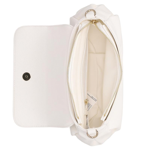 Stap de wereld van verfijnde stijl binnen met de Valentino Bags Dea Re. Deze tas is een prachtige mix van klassiek en modern, gehuld in een strak witte kleur die wordt verlevendigd door luxe goudkleurige hardware. De generfde leerlook maakt het tot een echte eyecatcher en de merknaam voorop de tas laat zien dat je te maken hebt met een iconisch design van Valentino Bags. Het Italiaanse merk staat bekend om zijn verfijnde ontwerpen en heeft een stevige positie in de modewereld. Wat de tas tevens echt speciaal maakt, is de korte schouderband met de merknaam in kunststof letters, afgewerkt met subtiele afgeronde goudkleurige studs voor een chique touch.
