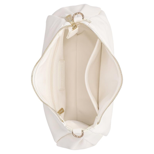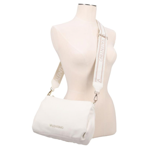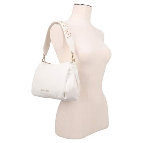 Stap de wereld van verfijnde stijl binnen met de Valentino Bags Dea Re. Deze tas vormt een elegante balans tussen klassiek en modern, uitgevoerd in een strak wit dat prachtig tot leven komt dankzij de luxe goudkleurige hardware. De generfde leerlook geeft het ontwerp extra diepte en maakt het tot een echte eyecatcher, terwijl de merknaam op de voorzijde direct verwijst naar het iconische karakter van Valentino Bags. Wat dit model extra bijzonder maakt, is de korte schouderband met de merknaam in kunststof letters, verfijnd met subtiele afgeronde goudkleurige studs die zorgen voor een krachtige en chique finishing touch.