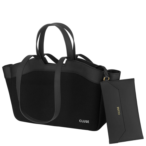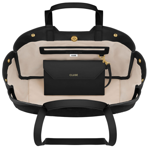 Nieuw! De stijlvolle Cluse Tote Bag Petite: een zwart waterafstotend canvas met luxe PU-details, nu in een kleiner jasje en perfect voor elke dag!