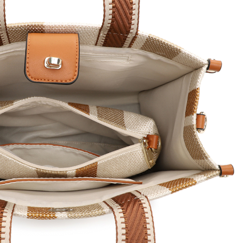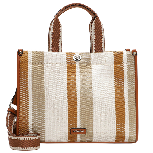 De Emily & Noah Jasmin tas in beige-wit gestreept design met warme bruine details is dé perfecte combinatie van stijl en functionaliteit. Met een moderne shopper en een praktische extra schoudertas of crossbody, past dit duo bij elke outfit en gelegenheid!