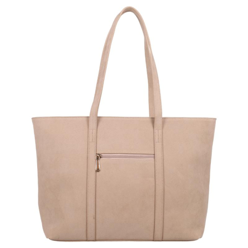 Deze shopper is niet alleen een lust voor het oog; hij is ook uitermate praktisch. Binnenin vind je één ruim hoofdcompartiment dat handig in tweeën wordt gedeeld door een tussenschot met een ritsvak. Aan de ene kant heb je nog een extra ritsvak, terwijl de andere kant twee handige steekvakken biedt. Het geheel sluit veilig af met een ritssluiting. Voorop vind je een extra steekvak voor snelle toegang, en achterop een discreet ritsvak. Geen zorgen over slijtage, want de metalen stootnoppen onderop bieden optimale bescherming.