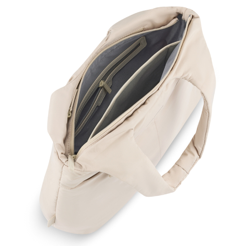 Deze shopper is jouw ideale metgezel voor dagelijks gebruik. Met een stevige ritssluiting houd je al je essentials veilig. Naast het hoofdcompartiment vind je een extra ritsvakje aan de buitenkant en een handige opbergplek aan de achterkant. Binnenin biedt het ruime hoofdcompartiment een ritsvak, een steekvak voor je waterfles en nog een steekvak dat perfect is voor een 14 inch laptop.