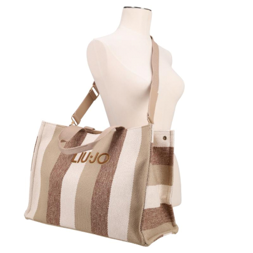 Ontdek de veelzijdige en stijlvolle Liu Jo Canvas shopper in een sprankelend beige-wit gestreept design, een must-have accessoire dat moeiteloos je dagelijkse look verfijnt. Voeg een vleugje Italiaanse elegantie toe aan je outfit met deze prachtige tas!