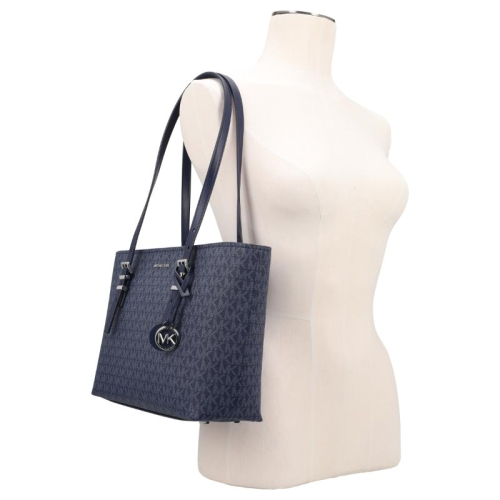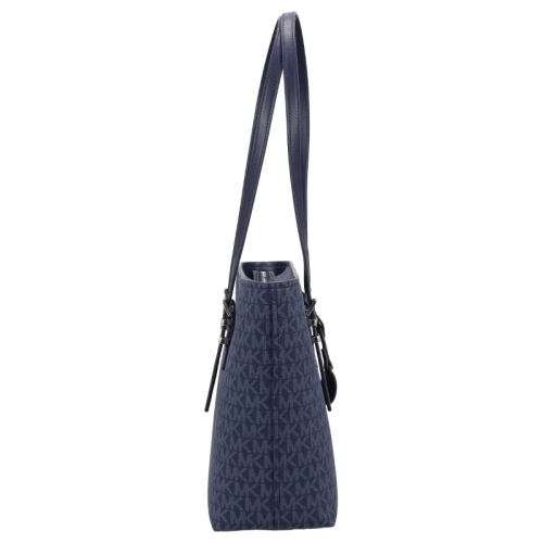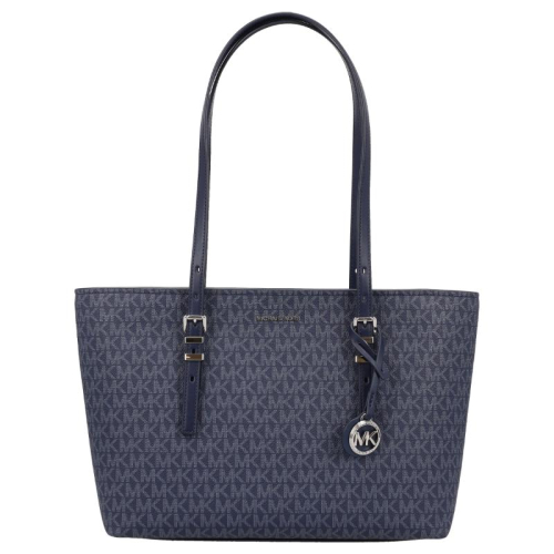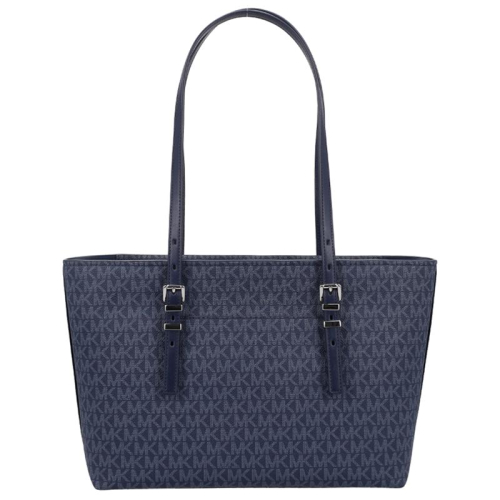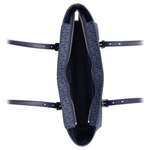 De Michael Kors Quinn handtas is uitgevoerd in luxe blauw leer en afgewerkt met zilverkleurige hardware. Het ontwerp wordt verrijkt met een all-over logo in een iets lichtere blauwtint, wat zorgt voor een subtiele en moderne uitstraling. Extra details zijn de zilverkleurige bag charm en het gedebossede logo op de voorkant, die de tas een verfijnde finishnig touch geven.