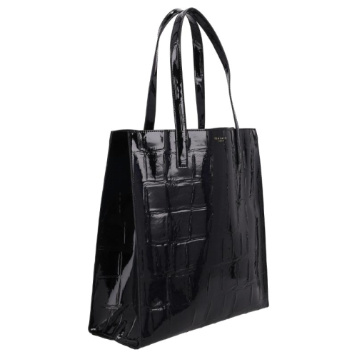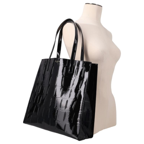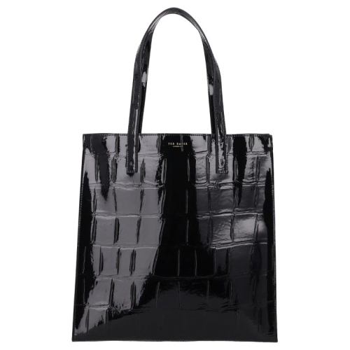 Deze schoudertas is een perfect voorbeeld van een iconisch Ted Baker design. Ted Baker staat bekend als een Brits modemerk dat luxe, eigentijdse accessoires combineert met verfijnde designs. Met zijn monochrome, hoogglanzende zwarte crocoprint en het goudkleurige merklogo op de voorzijde is deze stijlvolle tas een onmisbare aanvulling op jouw garderobe.