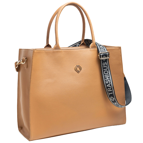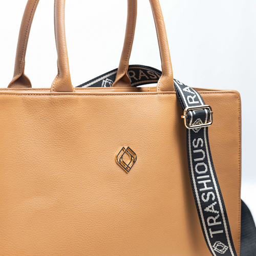 De Trashious Urban is een moderne en stijlvolle tas in bruin. De goudkleurige hardware geeft een luxe uitstraling, terwijl het gebruik van appelleer zorgt voor een duurzame en eigentijdse look.
