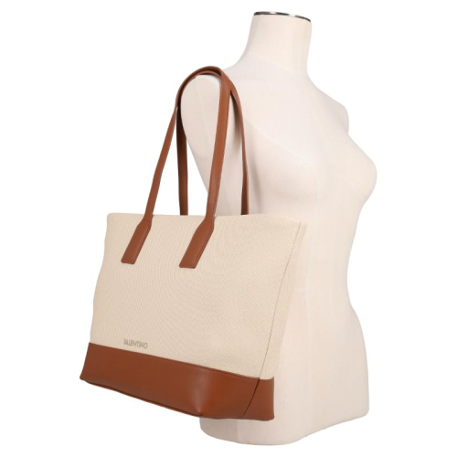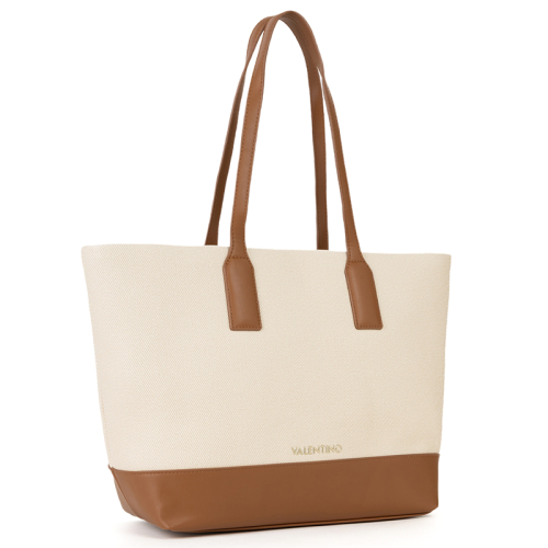 De Valentino Bags Atena Re is een verfijnde shopper in een warme beige kleur met luxueuze bruine leren details, perfect voor elke modieuze gelegenheid. Ervaar de allure van Italiaanse stijl en onberispelijke functionaliteit in één prachtige tas!