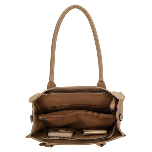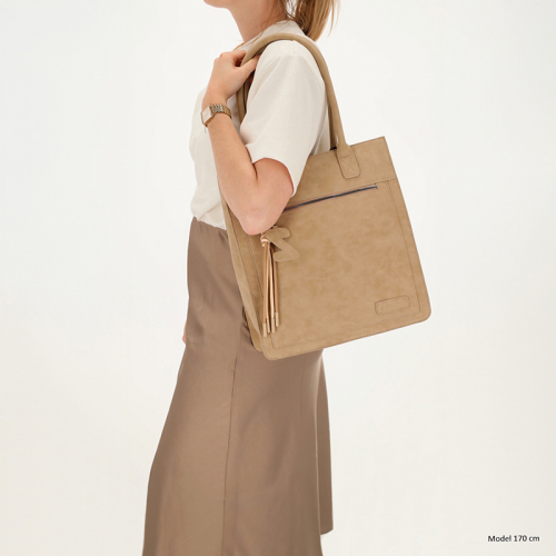 Efficiëntie ontmoet stijl met deze shopper. De tas heeft een veilige ritssluiting die toegang biedt tot een ruim hoofdcompartiment, handig voor al jouw essentials. Het hoofdvak is slim gesplitst door een extra ritsvak, wat zorgt voor overzicht en organisatie. Met twee extra ritsvakken en twee steekvakken binnenin, is er voldoende ruimte om al je spullen netjes op te bergen en altijd binnen handbereik te hebben.
