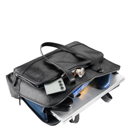 Deze laptoptas is gemaakt van hoogwaardig buffelleer, waardoor hij niet alleen duurzaam is, maar ook een luxe uitstraling heeft. Met twee stevige draaghengsels en een verstelbare en afneembare schouderband biedt deze tas verschillende draagopties. Binnenin het voorvak met ritssluiting vind je twee steekvakken en drie pennenlussen. Achterop de tas bevindt zich een extra ritsvak voor snelle toegang tot kleine items.