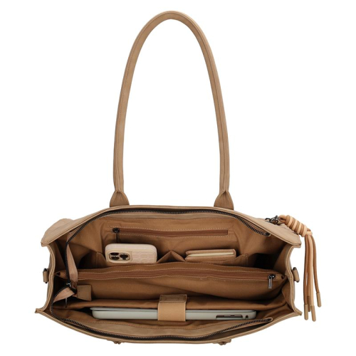 Als het gaat om functionaliteit, stelt deze werktas zeker niet teleur. Je opent de tas gemakkelijk met een ritssluiting, waarbij je toegang krijgt tot een ruim hoofdcompartiment. Binnenin vind je een ritsvak dat het compartiment handig splitst, zodat je al je spullen netjes kunt organiseren. Met twee extra ritsvakken en twee steekvakken is er ruimte genoeg om alles op z'n plek te houden en vergeet niet het gewatteerde 15 inch laptopvak. Ideaal voor diegenen die niets aan het toeval willen overlaten.