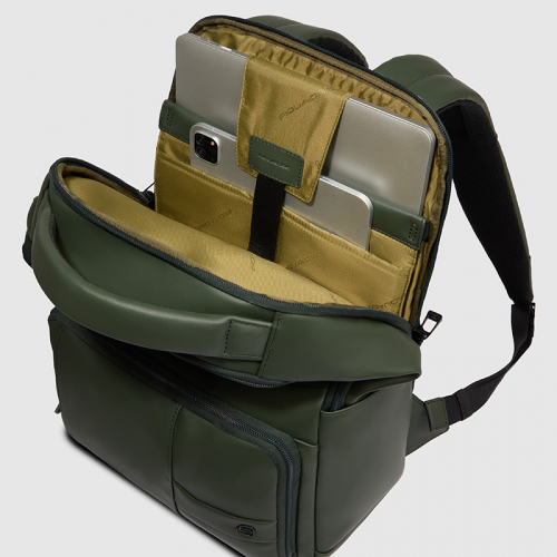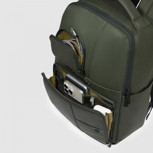 De Piquadro laptoprugtas combineert een verfijnde uitstraling met een professionele flair. De kleur groen in combinatie met zwartkleurig hardware geeft het ontwerp een elegante en moderne look. Deze strakke vormgeving maakt de tas uitermate geschikt voor zowel zakelijke afspraken als dagelijks gebruik.