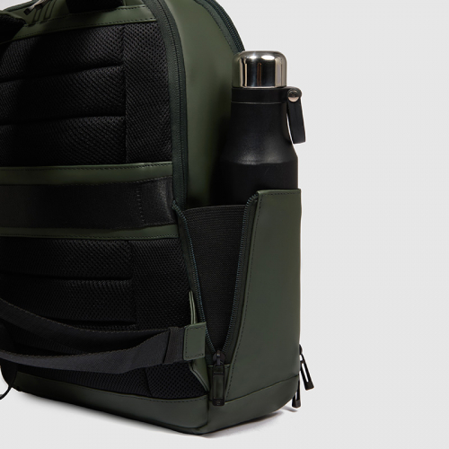 Binnenin is de rugtas overzichtelijk en functioneel ingedeeld. Het achterste ritsvak bevat twee ruime steekvakken, ideaal voor documenten of een tablet. Het hoofdcompartiment is voorzien van twee ritsvakken en een klikgesp die voorkomt dat je laptop of andere spullen verschuiven. In het voorvak zijn vijf steekvakken geïntegreerd, perfect voor het organiseren van kleinere items.