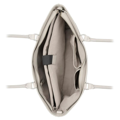 Deze grijze laptoptas is niet alleen een lust voor het oog, maar ook zeer praktisch in gebruik. Hij is voorzien van twee handvaten en een lange leren schouderband, zodat je hem op verschillende manieren kunt dragen. Het handige vak aan de achterkant sluit met een rits, waardoor je gemakkelijk toegang hebt tot je essentials onderweg.