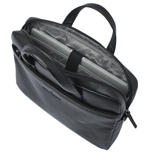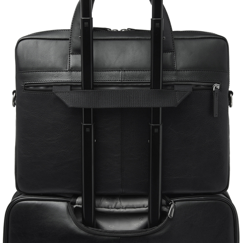 De tas heeft een ruim ritsvak aan de voor- en achterkant, wat ideaal is voor jouw belangrijkste documenten. Dit model is eenvoudig te dragen aan de draaghengsels, die met een drukknoop aan elkaar te bevestigen zijn voor extra gemak. Daarnaast is de schouderband verstelbaar en afneembaar, zodat je hem op jouw gewenste lengte kunt dragen. Dankzij de trolleyband kun je de tas eenvoudig meenemen op zakenreis.