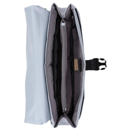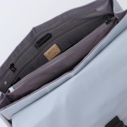 Onder de klep bevindt zich een steekvak en het hoofdcompartiment. Dit is slim ingedeeld met een gevoerd laptopvak voor een 13 inch laptop, een gevoerd tabletvak en een gevoerd telefoonvak. In het midden zit een ritsvak dat het compartiment opdeelt in twee open ruimtes. Aan de voorzijde van het hoofdcompartiment bevinden zich vier aparte ritsvakken voor documenten en accessoires, plus een handige pennenlus.