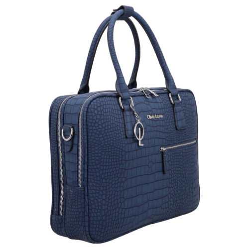 De Octavia van Olivia Lauren is een elegante werktas in de kleur blauw met een verfijnde crocoprint van imitatieleer. Ziverkleurige hardware en een bijpassende bag charm geven deze tas een luxe uitstraling, perfect voor een professionele look met karakter.