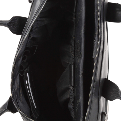 Deze werktas is uitgevoerd in stevig zwart rundleer met subtiele zilverkleurige hardware. Het tijdloze ontwerp past moeiteloos bij zowel zakelijke als casual outfits en is geschikt voor elke werkdag.