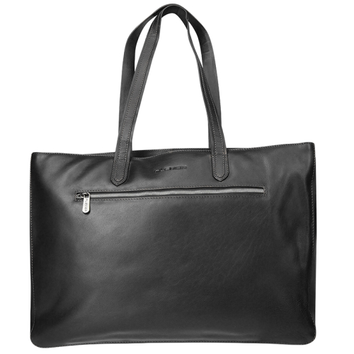De buitenzijde van de Plevier Livingston aktetas is een toonbeeld van praktische elegantie. Gemaakt van hoogwaardig zwart leer, biedt het een discrete maar toch opvallende uitstraling. De tas is voorzien van handige ritsvakken aan zowel de voor- als achterkant, perfect voor items die je snel nodig hebt, zoals je telefoon of notitieblok.