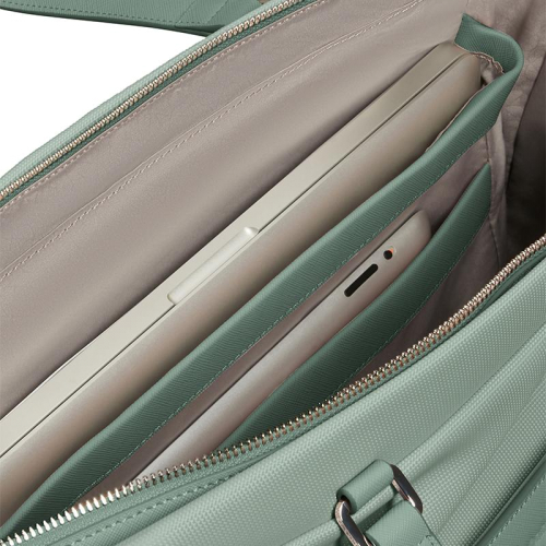 De Samsonite Image Biz in de kleur groen is een praktische werktas met een laptop- en tabletvak, terwijl de bovenhandvatten en de afneembare schouderriem zorgen voor elegantie.