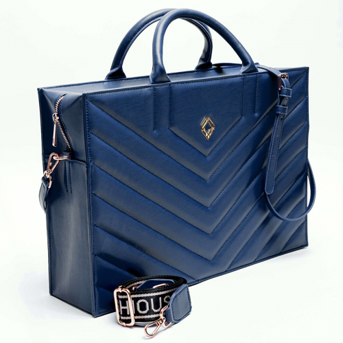 De Trashious Muse is een stevige en stijlvolle laptoptas van appelleer in het blauw. Het duurzame materiaal wordt gecombineerd met goudkleurige hardware voor een luxe uitstraling. Op de voorkant zorgen de subtiele, uitgerekte V-lijntjes voor een moderne en verfijnde look.