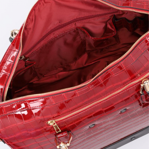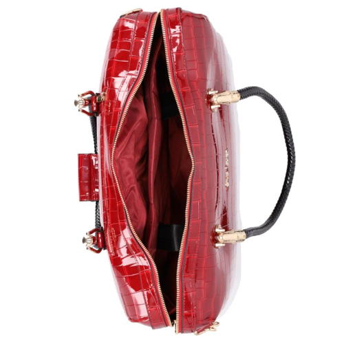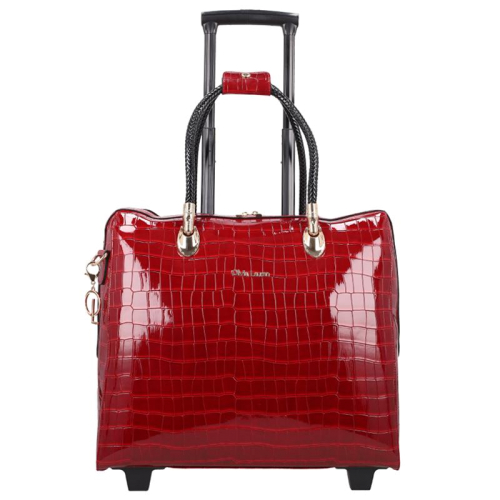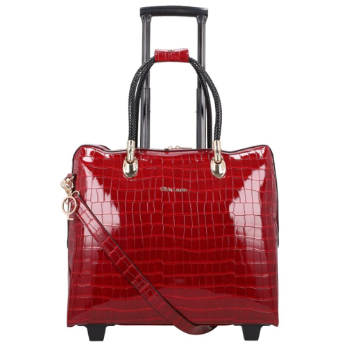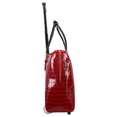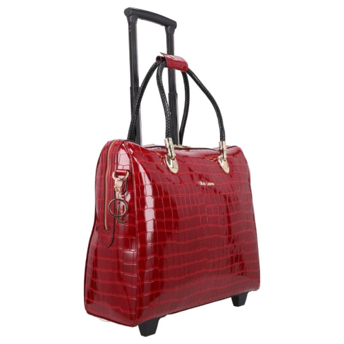De Alice Rouge van Olivia Lauren is een elegante werktas en laptoptrolley in één. Uitgevoerd in een glanzende rode croco-look met goudkleurige hardware en een speelse bag charm, straalt deze tas luxe en professionaliteit uit.